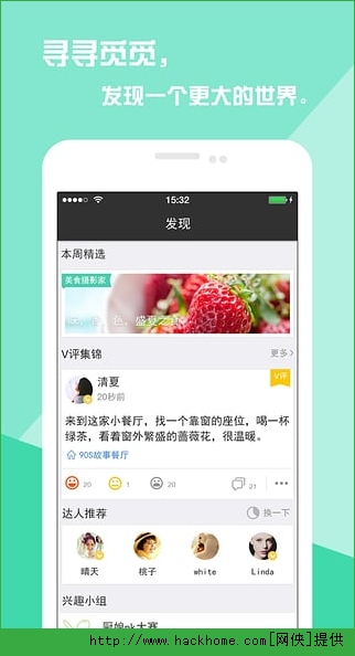 1.达人推荐:活跃度最高、最有质量的达人用户推荐,拓展你的美食圈,获得众多达人的美食经验。