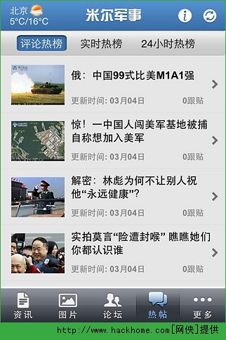 2、您可以随时随地浏览最新的军事动态、论坛原创以及军事评论,共同参与米尔社区的讨论。