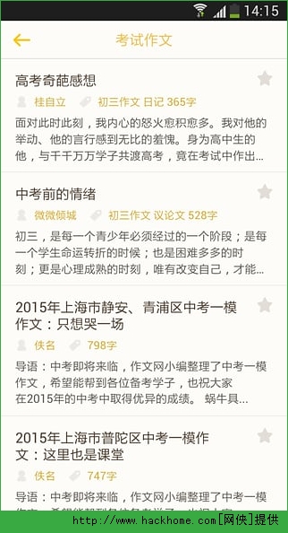 2、海量内容专业实用,并且每天都有数千篇优秀作文实时更新。