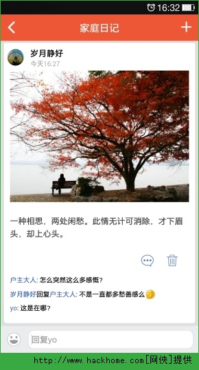 1、【家庭圈】家人专用的即时通讯功能,让沟通跨越时间和空间的限制;