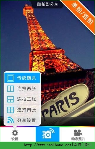3、即拍即分享至新浪微博、腾讯微博、人人网;