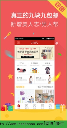 九块九包邮安卓手机版app:这是一款关于网上购物的手机app软件,这款软件里面的商品全场都是9.9包邮哦,软甲里面的商品都是正品商品,质量有保证而且价格也比京东、聚会算要便宜。快来下载吧!