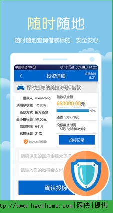 3、随时随地:随时随地查询借款标的,安全安心;