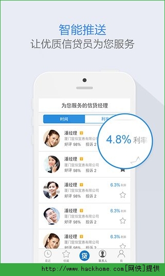6、智能推送配合完善的信用体系,让优质信贷员优先为您服务。