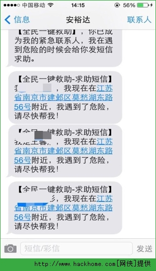 经常需要走夜路的年轻女性,遇到危急情况时发出求救信息给亲朋好友。