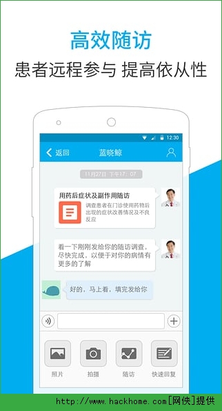 蓝鲸医生助手安卓手机版app:这是一款关于医生治疗方面的手机app软件,这款软件里面不仅包换了患者的管理和记录还有很多数据分析可以帮助医生更直观的了解病人的病情。