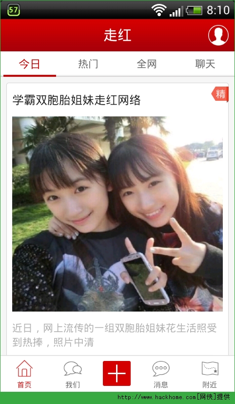 走红软件安卓版app:这是一款关于社交的手机app软件,这款软件里面不仅每日会更新一些新闻动态或热点焦点还会有一些周边的唯美照片哦。软件还能发出即时聊天。快和你周围的人畅快的聊起来吧!