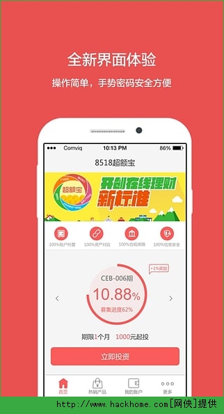 8518超额宝安卓手机版app:专为安卓手机用户提供的由8518理财网推出的一款新型的理财手机客户端。8518超额宝app资产分类更细致,千亿投融资,违约记录一直为0噢~!更多精彩等你来体验~!