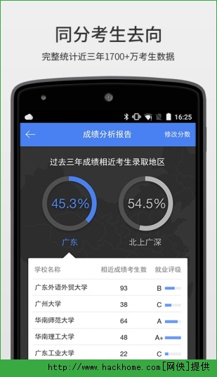 1、输入分数即可免费获得一份完整成绩分析报告,包含同类考生往年去向,志愿填报建议等;