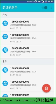 验证码助手app安卓手机版是一款专门用于接收验证码的应用,有了它,它能够自动弹出验证码的窗口,并且自动剪切到剪切板,方便您的查看,同时还能够帮您删去无效的验证码哦,赶快点击下载吧!