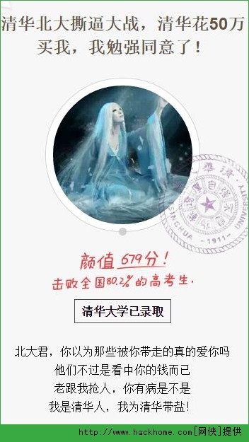 3、上传照片后立马就会得到测试结果,清华、北大、厦大,同时还会有颜值分数哦。