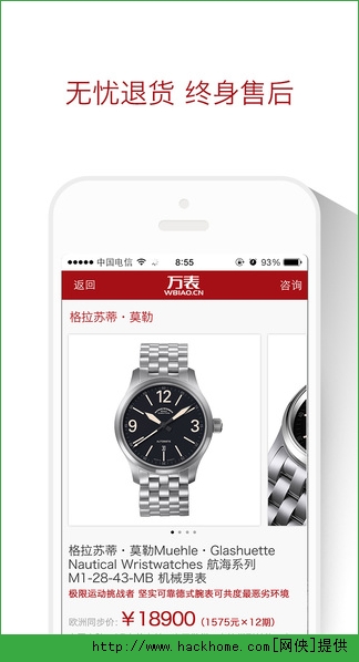 5、银行特约:14家银行手表类唯一合作商户,货到付款,信用卡0元免息分期,支付更轻松;