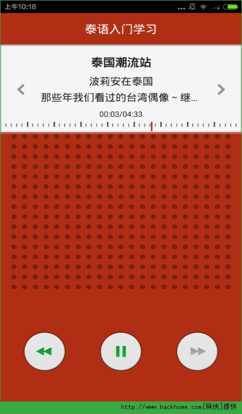泰语入门学习是一款教人学习泰语的软件,如果你对泰语感兴趣,如果你想学习泰语,那就来下载这款泰语入门学习的APP吧,这里为你提供泰语口语,泰语听力等学习资料,随时随地学习泰语,方便快捷,省时省力。让你从新手入门开始,循序渐进,练就一口流利的泰语。