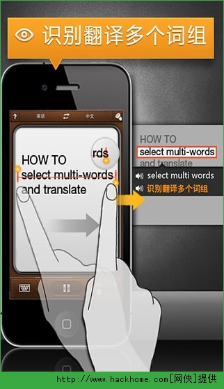 1.实时取词:只用相机取景框对准生词,即刻识别、翻译。