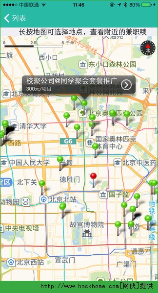 7、地图显示附近兼职信息,长按搜索附近兼职信息;