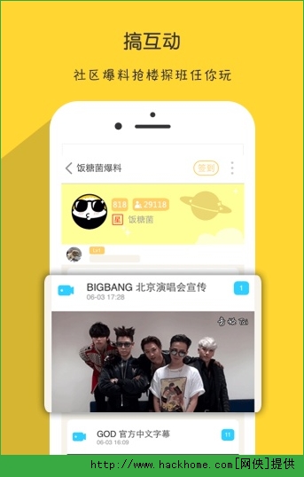 饭糖安卓手机版app:是专为粉丝们提供的一款社交神器~~饭糖app很方便粉丝们进行交流,资源的共享,有时候也有可能与明星互动呢,怎么啵,最强大资讯,最好玩社区,你为喜欢的明星关注了吗?~