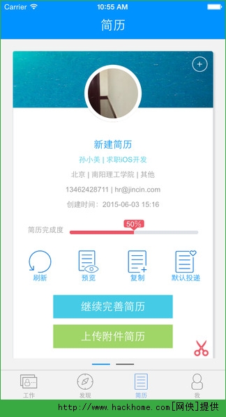 4、精美简历——填写手机在线简历,一键生成精美H5精美简历页面;
