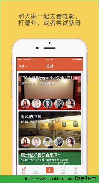 报名别人发起的活动,或者邀请大家一起玩;