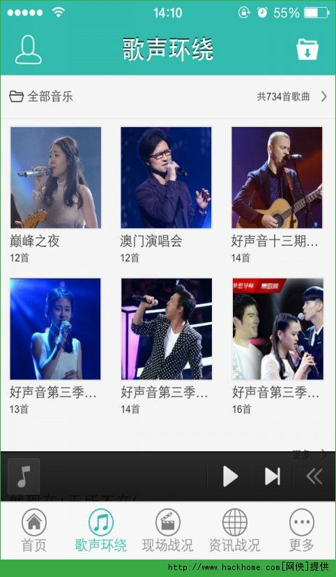 中国好声音第四季app:收集了中国好声音自开播以来所有的视频、音乐和写真,让爱听歌,爱唱歌,爱中国好声音的朋友们乐享其中。下载中国好声音app后,还可与其他粉丝互动哦。