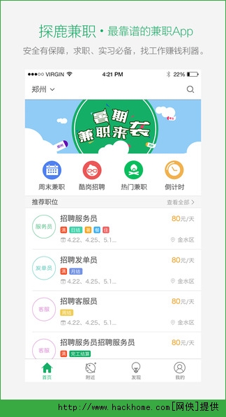 1、探鹿,大学生兼职神器,最靠谱简单的兼职平台;