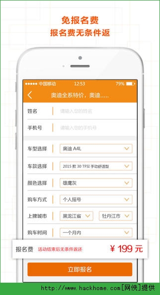 5、让用户方便快捷的完成在线报名、支付订金,线下提车的整个流程;