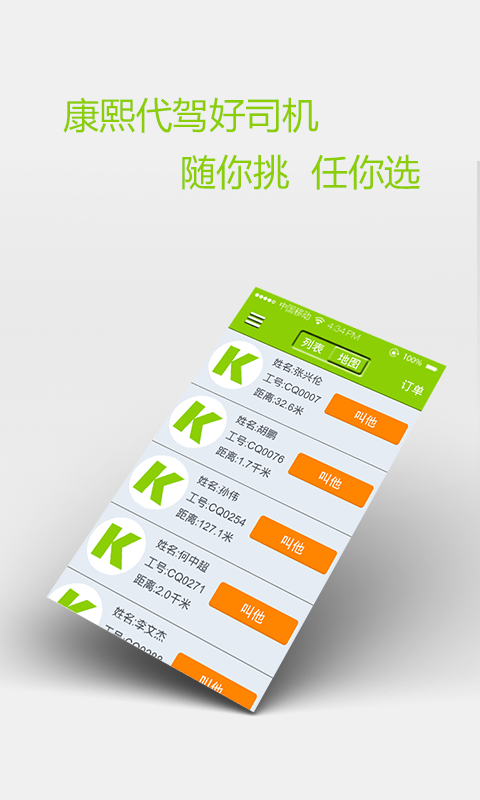 康熙帮叫安卓版app:是一款提供代驾服务的手机应用软件,这里有大量的代驾司机资源,背景干净,安全可靠。是你出门办事寻找代驾的最好平台。