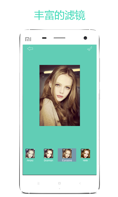 1、滤镜 这里包含了18种流行的滤镜,你可以不断的使用滤镜处理照片