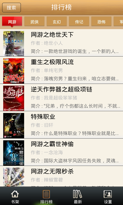 4.分类更广、种类更多,如:网游、武侠、玄幻、言情、军事、推理等等,应有尽有