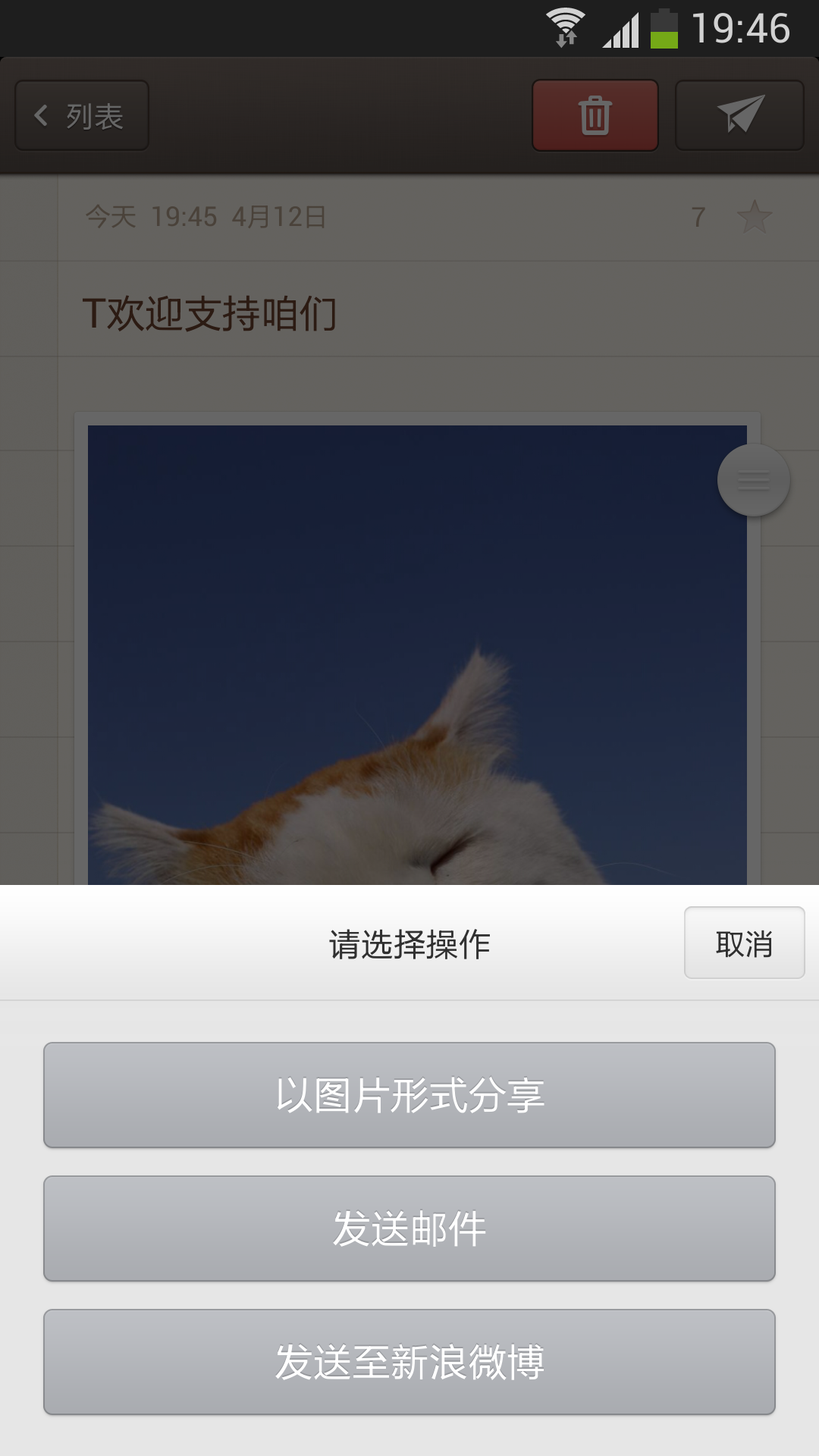 点滴记事本是一款帮助你记录自己生活点滴的记事本软件。在这里你可以记录自己的喜怒哀乐,你发现的好玩的、好吃的,让你感动的。它可以以最美形式为你呈现,在里面可以插图、上传视频等等。当然也可以将这些精美的作品分享到微博。喜欢的朋友快来下载吧1