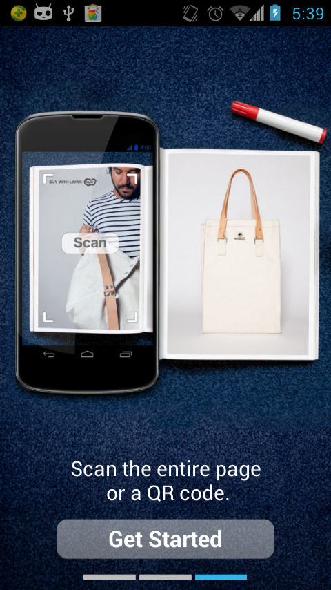 2.快来用Layar扫描印有Layar图标的杂志、报纸、海报、产品包装和其他的印刷品。
