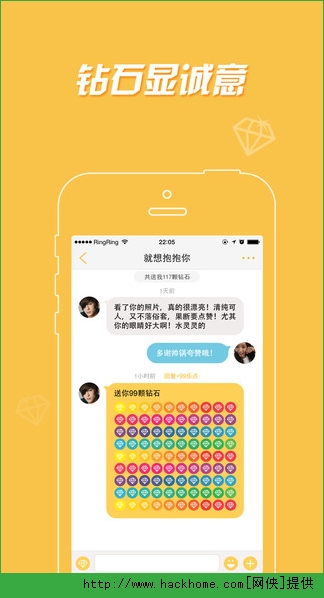 2、打招呼送钻石:其实妹子也想聊的,但妹子不喜欢豪无诚意的Loser,送颗钻石给她,想聊就能聊上,别担心,妹子不回复的话,钻石会如数奉还;
