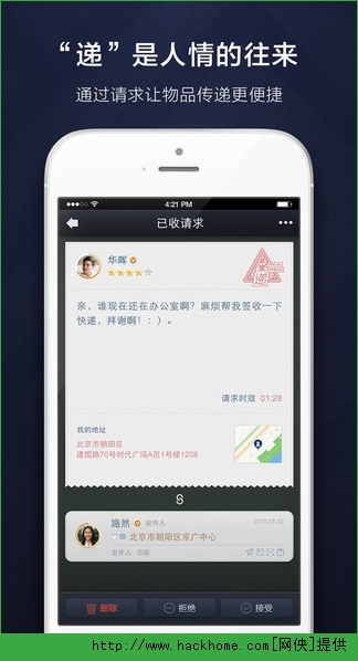 乐递app软件安卓版:有时候你拥有的某些东西对你来说并不起眼,但是对别人来说却很重要~乐递app帮你搭建一个以传递为乐趣的手机社交平台,通过分享感受彼此~
