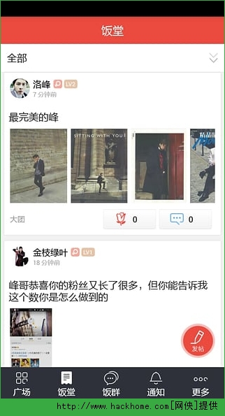 7.饭堂:发布你最爱的照片,收藏,说出你的想法,让所有粉丝认识你