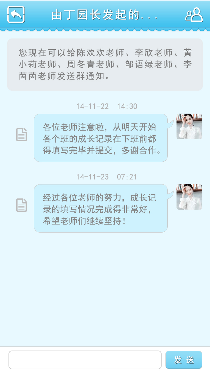 2、信息沟通:实现学校和家长之间全方位的沟通,老师可以选择指定或批量对学生家长发送孩子在校的情况,家长可及时获取老师发送的消息,同时可对信息进行回复。