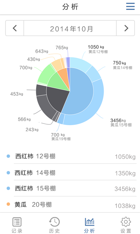 3.可按照菜品、操作人或者棚号浏览历史采收数据