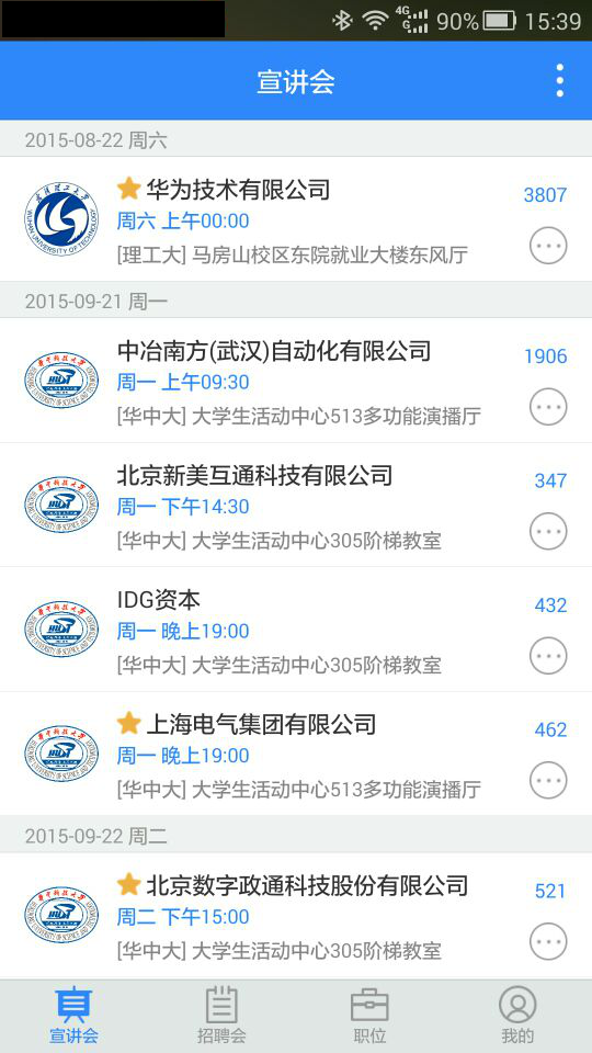 2、宣讲会——140所高校宣讲会信息清晰、、实时自动更新。