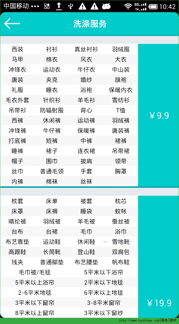 3.洗涤服务,用户可以在洗涤服务中根据需要洗涤的服务类别,进行快捷搜索,选择合适的衣服后只需添加至购物车,一键结算即可完成下单服务,更加快速便捷