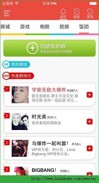 5、饭团,和同样喜欢BigBang的粉丝抱成团,大家一起聊天,打榜,CP,应援,接机;