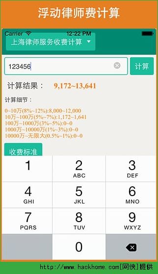 1,律师费计算:包含除港澳台以为的所有省份直辖市自治区的律师费计算,计算结果显示分段收费细节。
