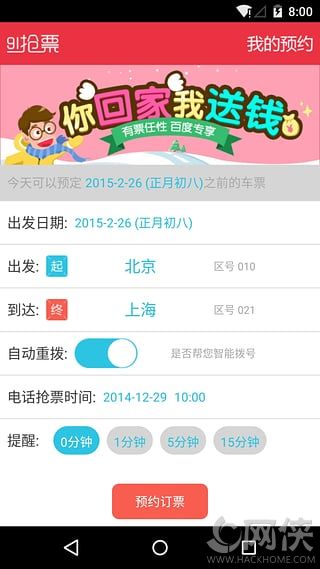 2.预约抢票:提前预约出发时间,帮你自动算出抢票时间,自动在该时间给您拨通95105105;