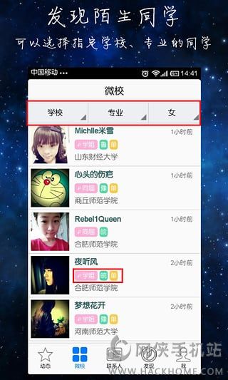 2、交友环境佳,显示都是在校学生,年龄相仿;