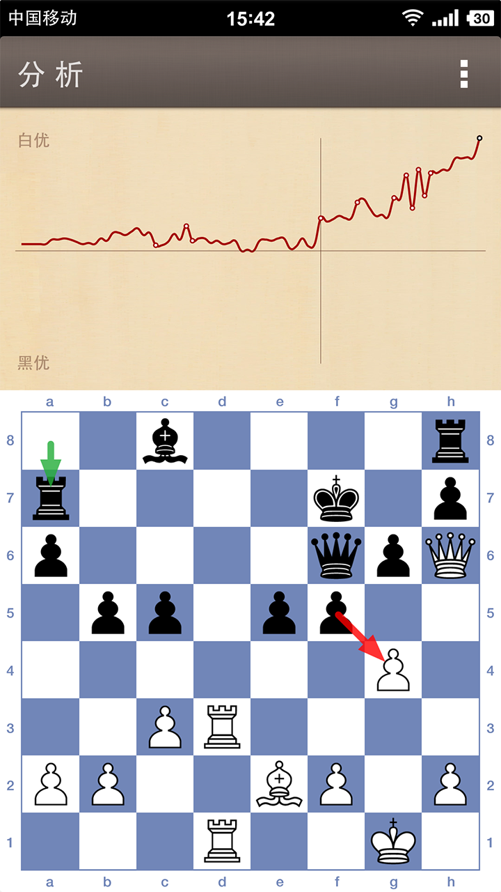 3.分析系统,应用世界排名第一的stockfish6引擎,一步步为你分析,助你进步。