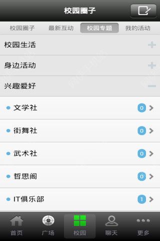 1.校园圈子:你可以在这里看到校园内其他人的聊天和帖子,你可以参与其中
