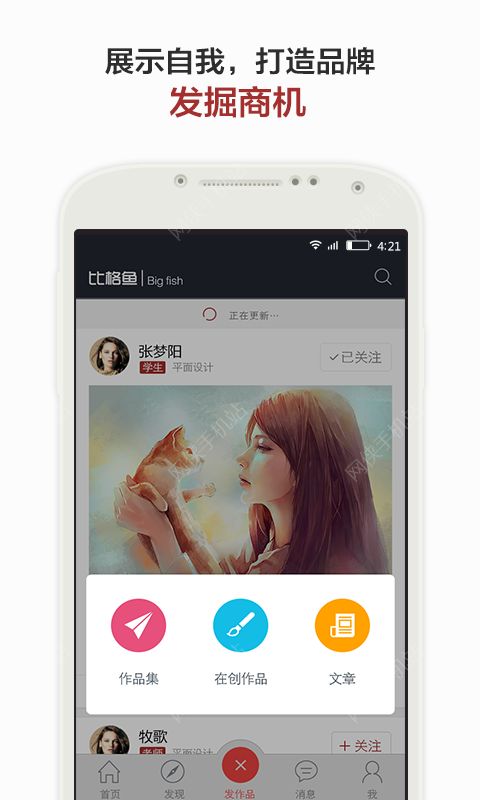 1.用户登录可以创建自己的作品集,在线创建作品、文章,展示自我,打造属于自己的品牌