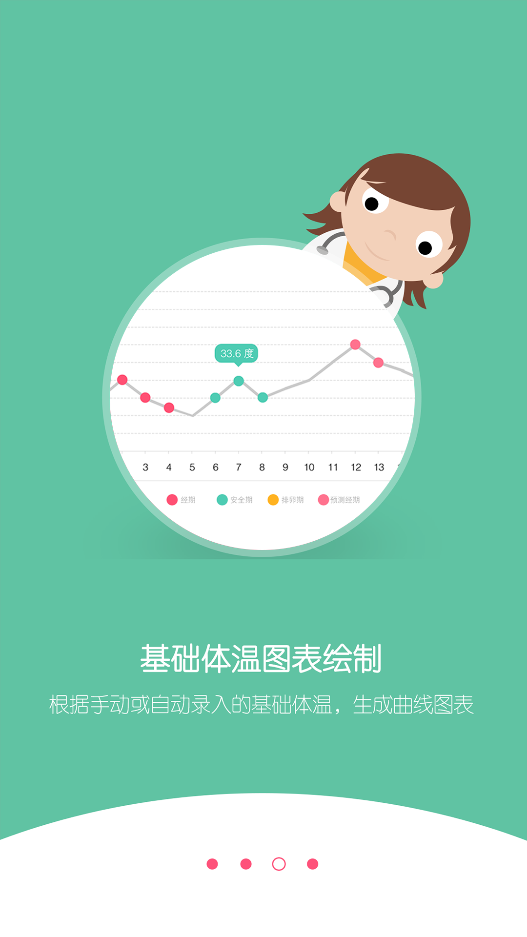 2.自动记录近一个月内的每日基础体温,生成体温折线图,通过与正常曲线的模式匹配比对结果,并第一时间给予用户通知;