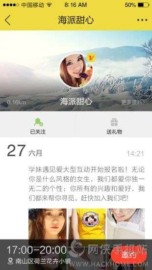 2、当你孤身一人,当你和闺蜜无所事事,当你觉得生活枯燥乏味,你必须到哈娄来,发布邀约,任何时间任何地点,运动,健身,吃饭,喝茶,看烟花,放风筝,看车展等等等等,随你的意愿;