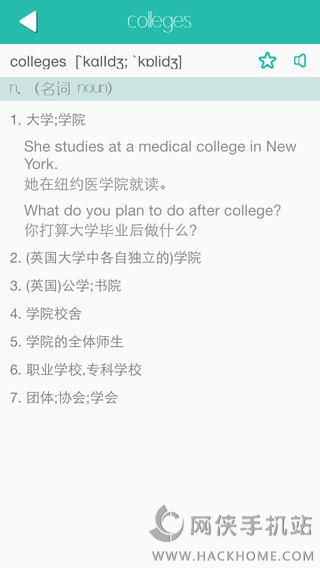 3、文中每个英文单词都有详细的解释,音标,发音以及例句用法,在阅读的时候只需在任意单词上长按超过一秒钟,即可查阅,即点即译,真正做到哪里不懂点哪里.新增单词检索功能,即输即查,方便使用;