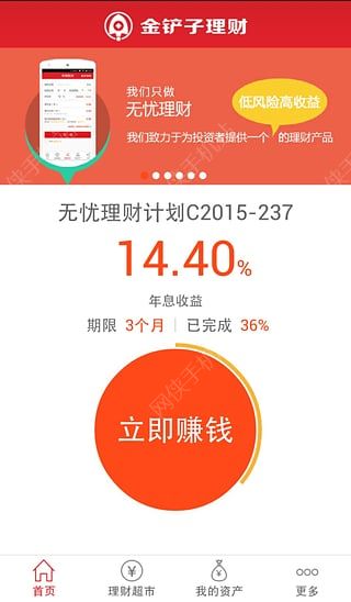 金铲子理财APP是一款帮助你投资理财的软件。平台上有许多理财产品任你选,并且支持多种银行支付与提现,同时为你推荐优质的理财产品,帮助你实现理财梦,这里还有第三方为你保障。喜欢的朋友快来下载吧!