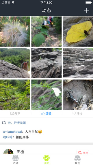 3、分享和记录户外经历:在纯粹的户外人群环境下分享户外心得、图片、视频和心得游记;