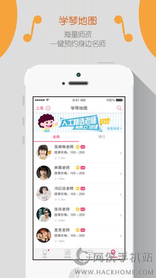 5、学琴地图,名师互动教学,弹吧小提琴基于LBS为用户搜寻离您最近的小提琴家教;